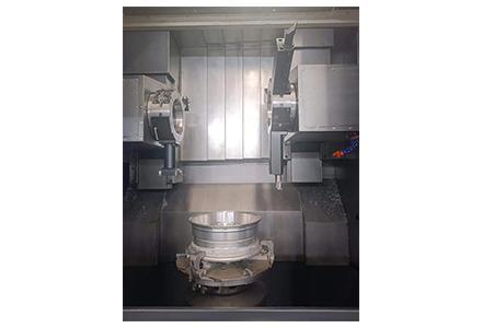 VW24T數控立式雙刀架車床是針對汽車輪轂加工開發的一款數控機床。擁有單主軸雙刀架,由雙通道數控系統控制,兩個六工位伺服刀架可各自獨立對刀和進給,兩個刀架可同時對輪轂進行內外圈加工,應用靈活,通用性強;一套控制控制兩套進給,加工效率高,占地面積小。