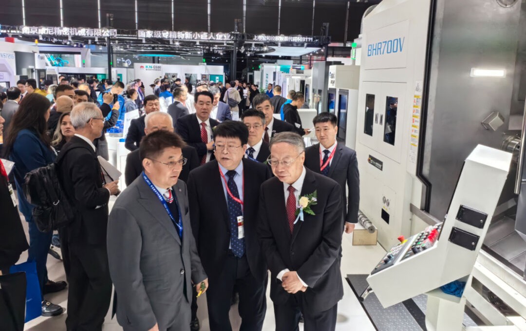 十三屆全國政協經濟委員會副主任、工業和信息化部原副部長蘇波,教育部原部長、中國工程院院士周濟,中國機床工具工業協會常務副理事長兼秘書長毛予鋒,陜西國資發展研究院高端裝備制造產業專家委員會主任嚴鑒鉑等領導蒞臨集團展位。秦川集團黨委書記、董事長馬旭耀、寶雞機床董事長李清耀向各位領導介紹企業及產品情況。